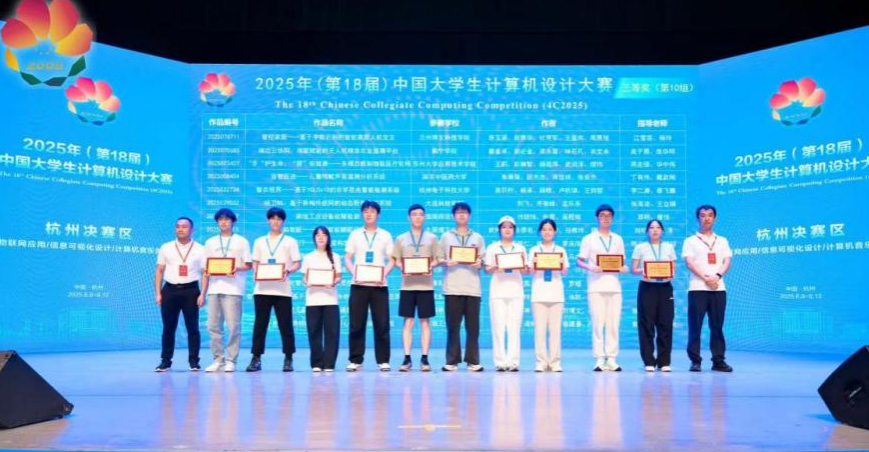 近日,2025年(第18届)中国大学生计算机设计大赛全国总决赛圆满落幕,其中“人工智能应用”决赛在吉林长春东北师范大学举行,“物联网应用”决赛在杭州浙江师范大学举行。在这场全国高校计算机领域的顶尖赛事中,我们学子凭借出色的创新能力和扎实的专业技能,从众多参赛队伍中脱颖而出,斩获两项全国三等奖,充分展现了我们在计算机科学技术领域的育人成果。