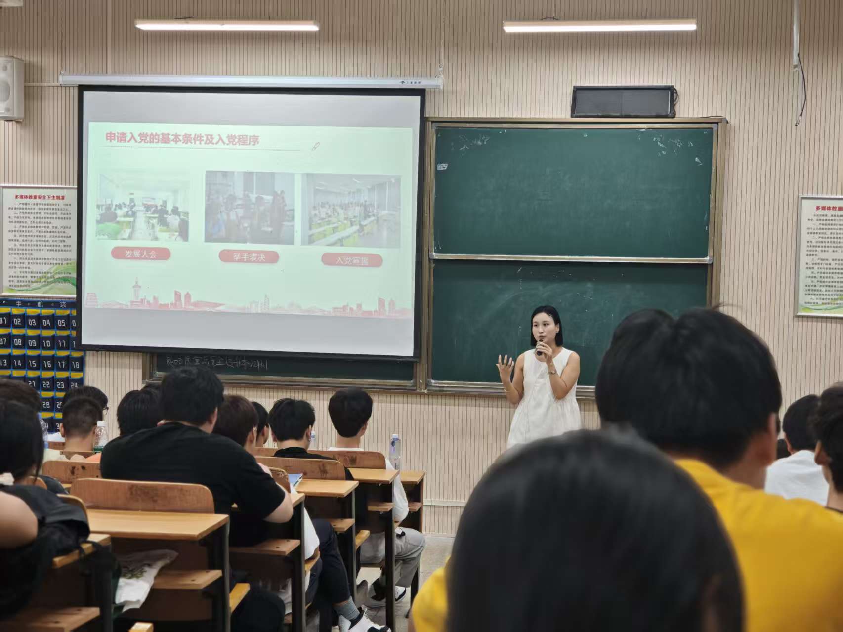 【通讯员 王卫玲】为引导新生坚定理想信念、筑牢信仰之基,9月10日,我们党总支秘书王卫玲面向全体2025级专升本新生成功开展入党启蒙教育活动,为同学们带来了一堂深刻而生动的思想政治第一课。